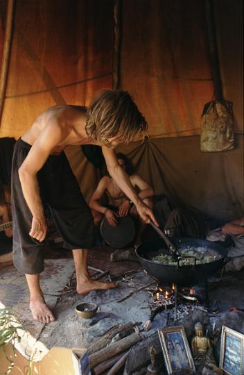 Put some money in the pot and you can take part in the communal meal at lunchtime. Some one goes to town to collect food from the market to cook, then a song is chanted, 'Thankyou for the Food'.