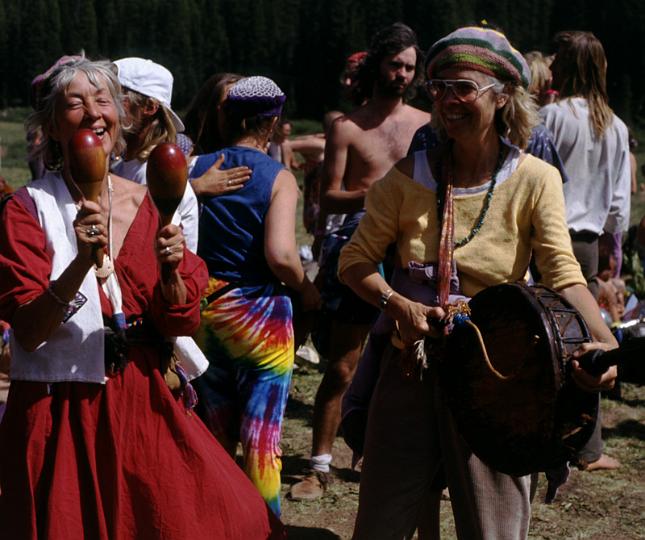 Some beautiful older women share their music in the revelry on the 4th of July, Rainbow Gathering.