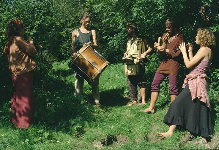 Chrisy and Clive from the Space Goats went around the protest camps and bender villages to record peoples songs and musical talent, and called it ' Tribal Voices'. It was so successfull that they organised a camp and called everyone to them , making tapes 3 + 4. |