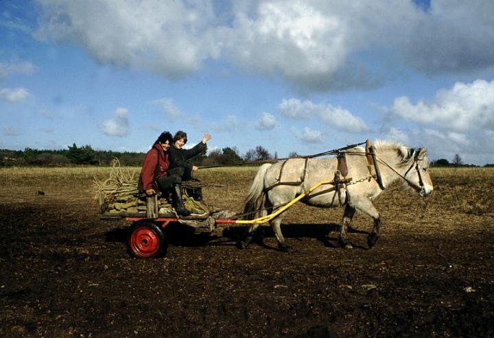 Donga Sam with a friend and her horse and cart.They were living at the time at 'Hanta Yo', a small community of tipi dwellers, etc in Brittany.
